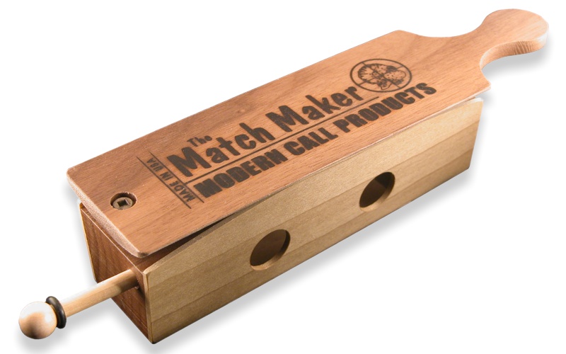 The Match Maker is a premium grade two-sided box call with a built-in purr call. You can mix and match a variety of sounds at the same time. Use this call to make all the required sounds to attract and locate wild turkey. General usage: